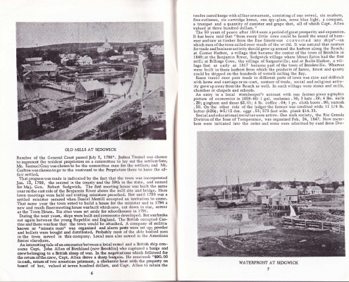 In 1963 a Bicentennial Committee made up of: Lyman Gray-West Sedgwick, Grindall-North Sedgwick, Catharine S. Marston-Sargentville, Albert G. Varnum-Sedgwick, and the Selectmen of the Town of Sedgwick, Foster B. Blake Sr.-General Chairman created a booklet that gave accounts of some of Sedgwick’s 200 year history.