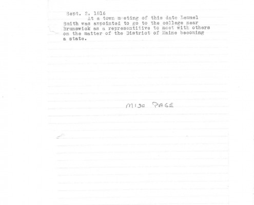 Around 1957 Wesley Alton Bracy (1898-1975) compiled data related to the beginnings of Sedgwick, Maine and about Rev. Daniel Merrill, “the first settled minister of the town of Sedgwick”. Wesley wrote that his information sources were a memoir by Rev. Merrill’s grandson Rev. Samuel Pearce Merrill and a Historical Sketch of the Town of Sedgwick written by Rev. Arthur Warren Smith.
